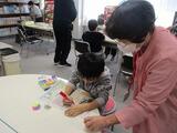 今日は「色変わりコマ」を用意していただき、まわすと色が変わる不思議な「色変わりコマ」をまわしたり、自分で色を塗ってオリジナルのコマを作ったりしました。