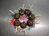 チョコレートのパイにかわいい目や耳を付けて「ハロウィンおばけ」の完成です👻