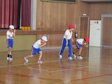3時間目は、1・2・3年生が、ボールを使ってのゲームを通して、すばやく動くことを体感していました。