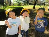 いよいよ城山公園へ到着です!奥へ歩いて行くと、ドングリがたくさんあるところがあり、子どもたちは、いろいろな形のドングリを見つけ、袋に集めることができました。いろいろな紅葉した葉も、見つけることができました。😊