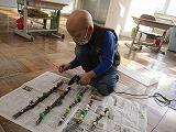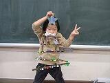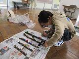 枝をつなげてツリーにし、秋探しで見つけたドングリやまつぼっくりなどを飾りに付けました。初めてグルーガンを使うことにも挑戦しました。